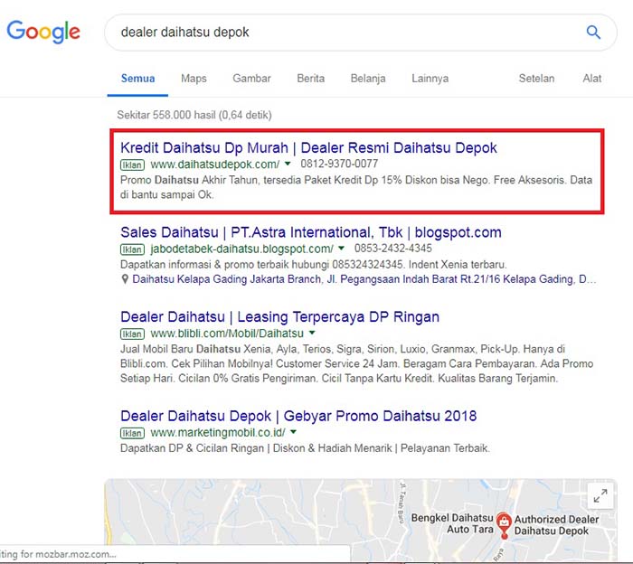 Terima kasih karena iklan saya sudah berada di halaman 1 dalam 1 jam saja.