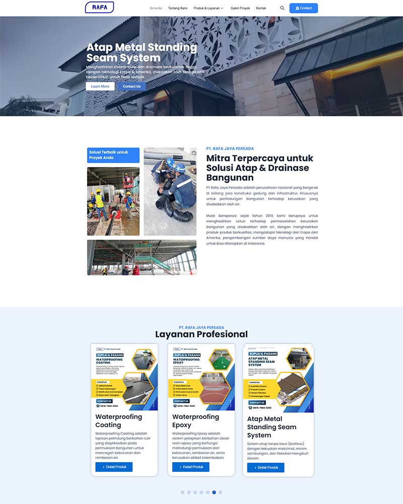 Website ini menampilkan informasi perusahaan, produk pompa yang disuplai, layanan teknis, serta kontak pemesanan dengan tampilan profesional dan navigasi yang mudah.