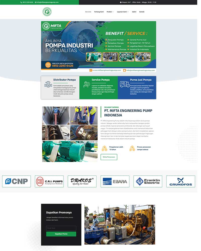 Website ini adalah salah satu project tahun 2023. Salah satu project perusahaan yang menjual berbagai macam kebutuhan pompa industri.