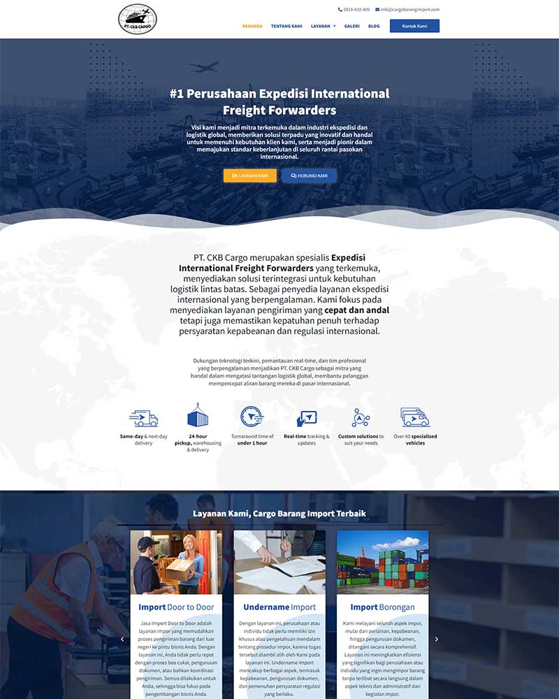 PT. CKB Cargo merupakan spesialis Expedisi International Freight Forwarders yang terkemuka, menyediakan solusi terintegrasi untuk kebutuhan logistik lintas batas. Sebagai penyedia layanan ekspedisi internasional yang berpengalaman. Kami fokus pada menyediakan layanan pengiriman yang cepat dan andal tetapi juga memastikan kepatuhan penuh terhadap persyaratan kepabeanan dan regulasi internasional.