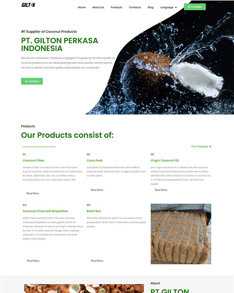 Website ini adalah salah satu project tahun 2021. Salah satu perusahaan suplier produk kelapa di Indonesia.